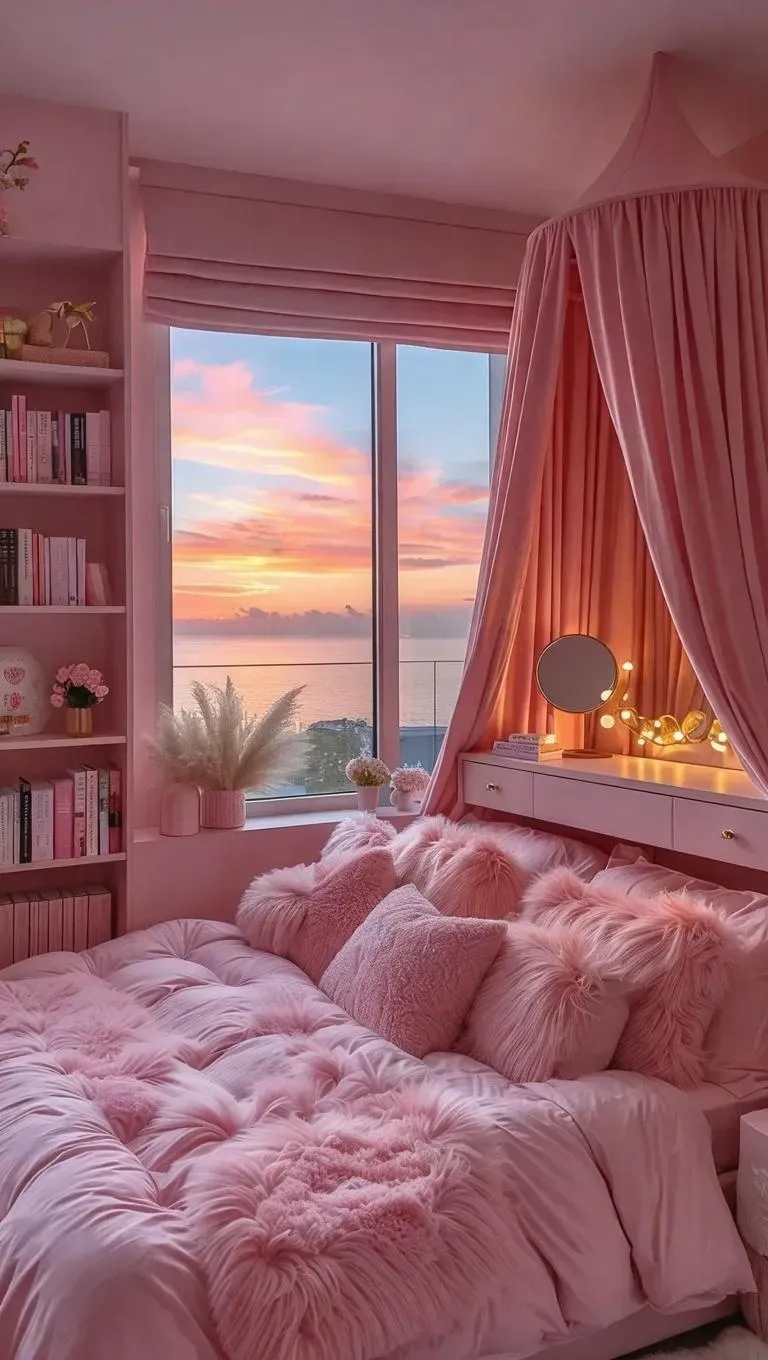 Create a serene pink aesthetic bedroom with vivago.ai's AI tools. Transform text prompts or images into cozy, modern spaces featuring soft hues, stylish decor, and dreamy ambiance. Ideal for interior design inspiration, AI-generated visuals, and professional-grade editing. Craft your perfect retreat effortlessly.