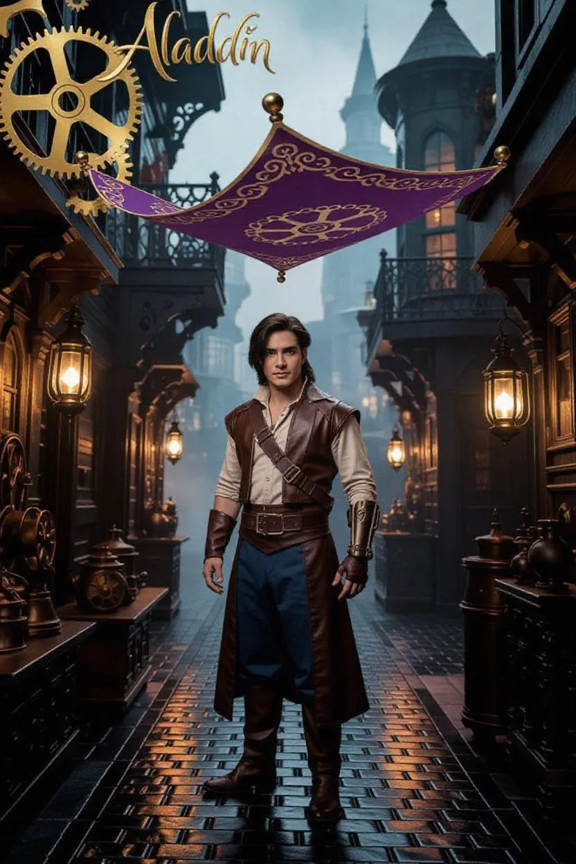 Step into a steampunk reimagining of Aladdin's fairytale world with AI-generated visuals blending Middle Eastern motifs, intricate gears, and industrial elements. Experience realistic details in magical lamps, mechanical genies, and desert landscapes. Perfect for creators seeking unique, AI-powered storytelling. Transform your ideas into stunning, professional-grade scenes with VivaGo.ai's advanced image generation tools.