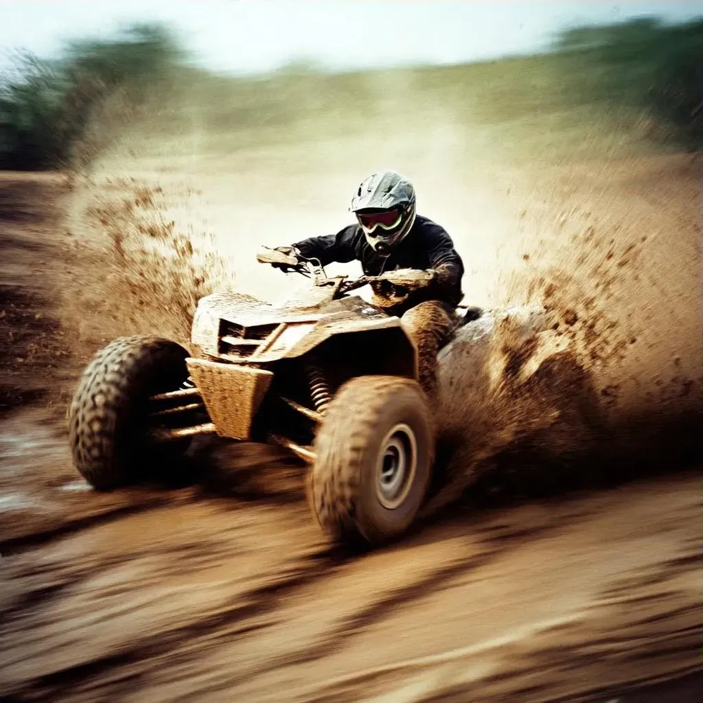Capture high-speed off-road adrenaline with a rugged quad bike tearing through muddy terrain. Dynamic mud splashes, weathered grunge textures, and tire tracks amplify the wild ride. AI-powered tools on vivago.ai craft striking visuals of a helmet-clad rider leaning into motion, perfect for extreme sports or adventure branding. Generate professional-grade action scenes effortlessly.
