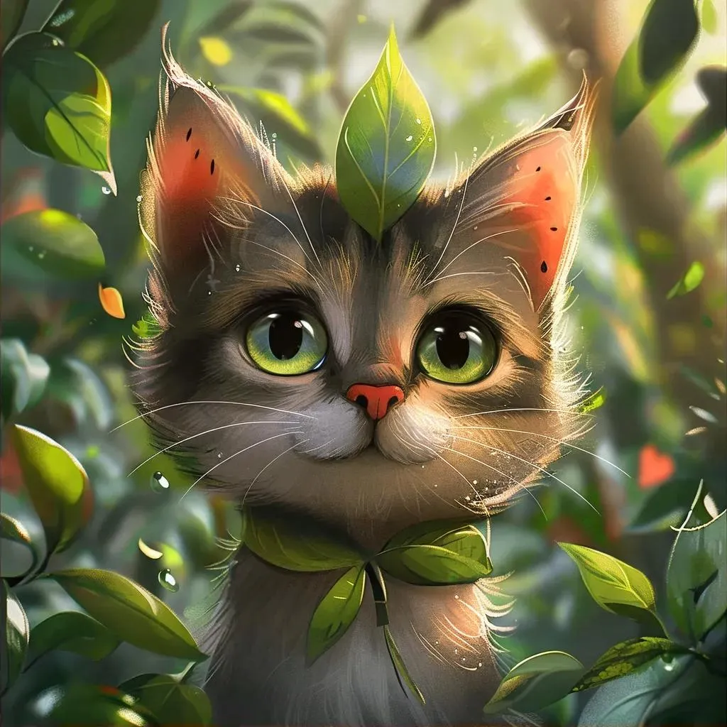 Generate a playful cartoon cat crafted from watermelon slices and tropical leaves with vivago.ai's AI art tools. Create vibrant, whimsical visuals perfect for social media, digital art, or creative projects. Transform text prompts into eye-catching watermelon-themed designs with juicy textures and AI-powered precision.