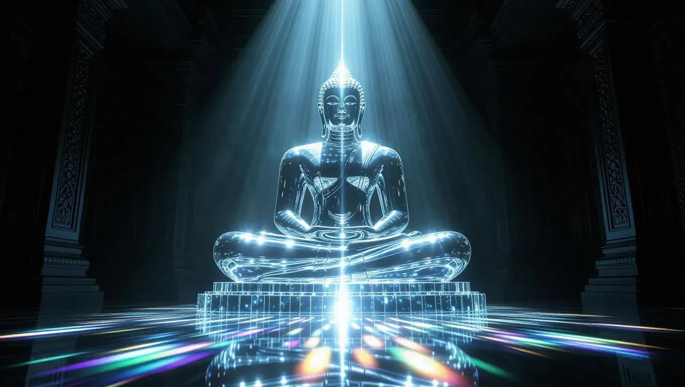 Explore a majestic Art Deco cathedral with a crystal temple, prismatic light effects, and kaleidoscopic colors. AI-generated visuals showcase ray casting, crystal textures, and ethereal luminosity. Mesmerizing light beams, intricate details, and awe-inspiring scale create transcendent, radiant imagery for professional AI art.