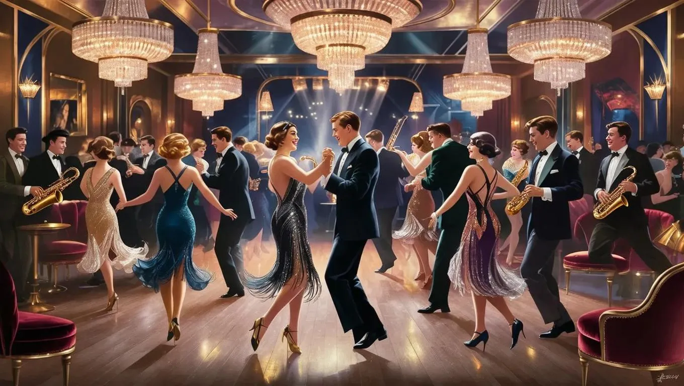 Step into a 1923 jazz lounge with an elegant, dancing crowd. Generate AI visuals of vintage dance scenes, Roaring Twenties ambiance, and timeless sophistication. Ideal for historical storytelling, music themes, and dynamic retro-inspired art. Elevate projects with AI-powered nostalgia.