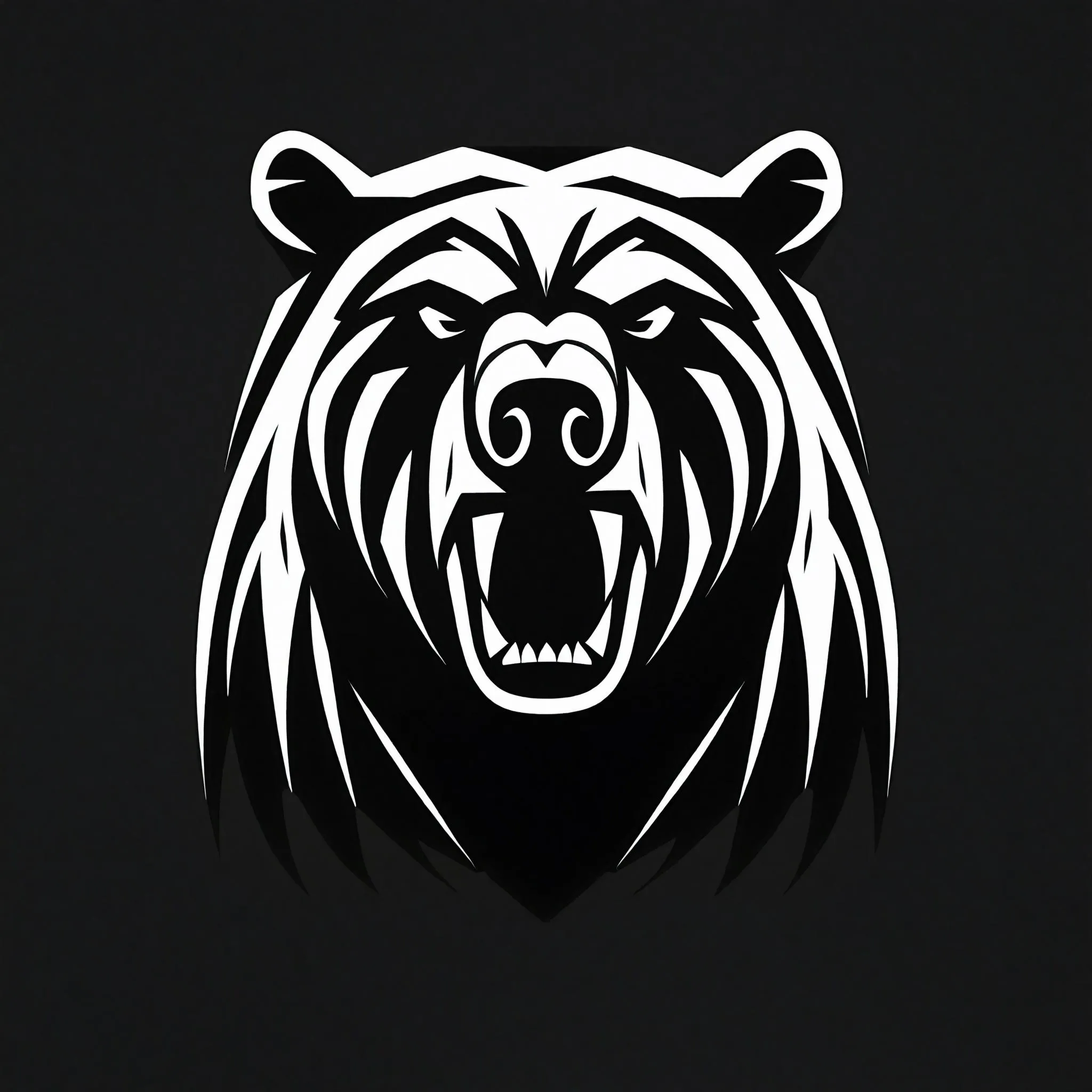 Create a sleek, minimalist black-and-white logo of an aggressive bear for elite fitness brands. AI-generated designs emphasize raw power and precision, tailored for premium gyms, supplements, or athletic apparel. High-contrast visuals convey strength and exclusivity, blending sharp lines and bold simplicity for professional-grade branding that commands authority in the fitness industry.