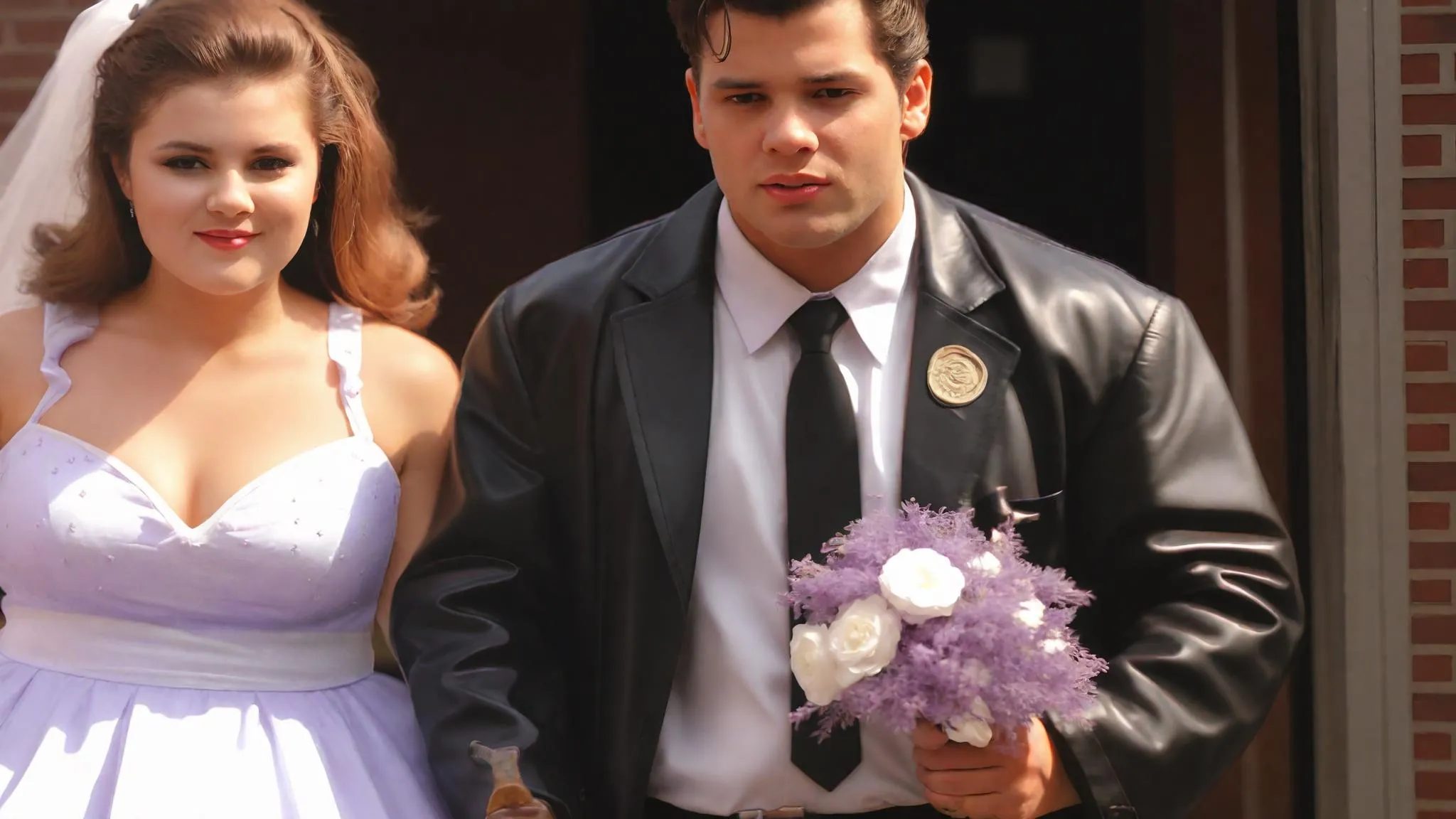 Create retro 1950s Greaser-style AI art with VivaGo. Generate rebellious couple visuals featuring brown hair and eyes, perfect for vintage-inspired projects or edgy character designs. Transform text into dynamic AI-generated images with retro aesthetics and detailed customization.