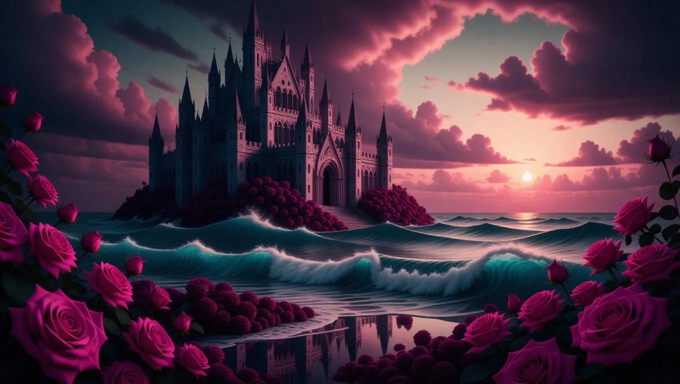 Vivid AI-generated imagery transforms text prompts into hyper-realistic watercolor scenes: a Gothic marble fortress adrift on cerulean waves, crimson roses cascading over algae-kissed stones. Bioluminescent pollen illuminates tidal pools as blush petals swirl through salt-tinged breezes. Experience hyper-saturated textures, ethereal depth-of-field blur, and professional-grade editing with VivaGo's AI effects for mesmerizing floating castles in peach-hued sunsets.