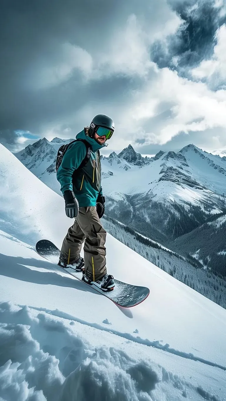 Capture the thrill of snowboarding with AI-generated visuals—dynamic snowboarder carves fresh powder on rugged slopes, clad in high-tech gear. Dramatic snowy peaks, stormy skies, and professional editing tools elevate winter sports imagery. Perfect for action photography, adventure branding, and immersive AI-powered snowscape creation.