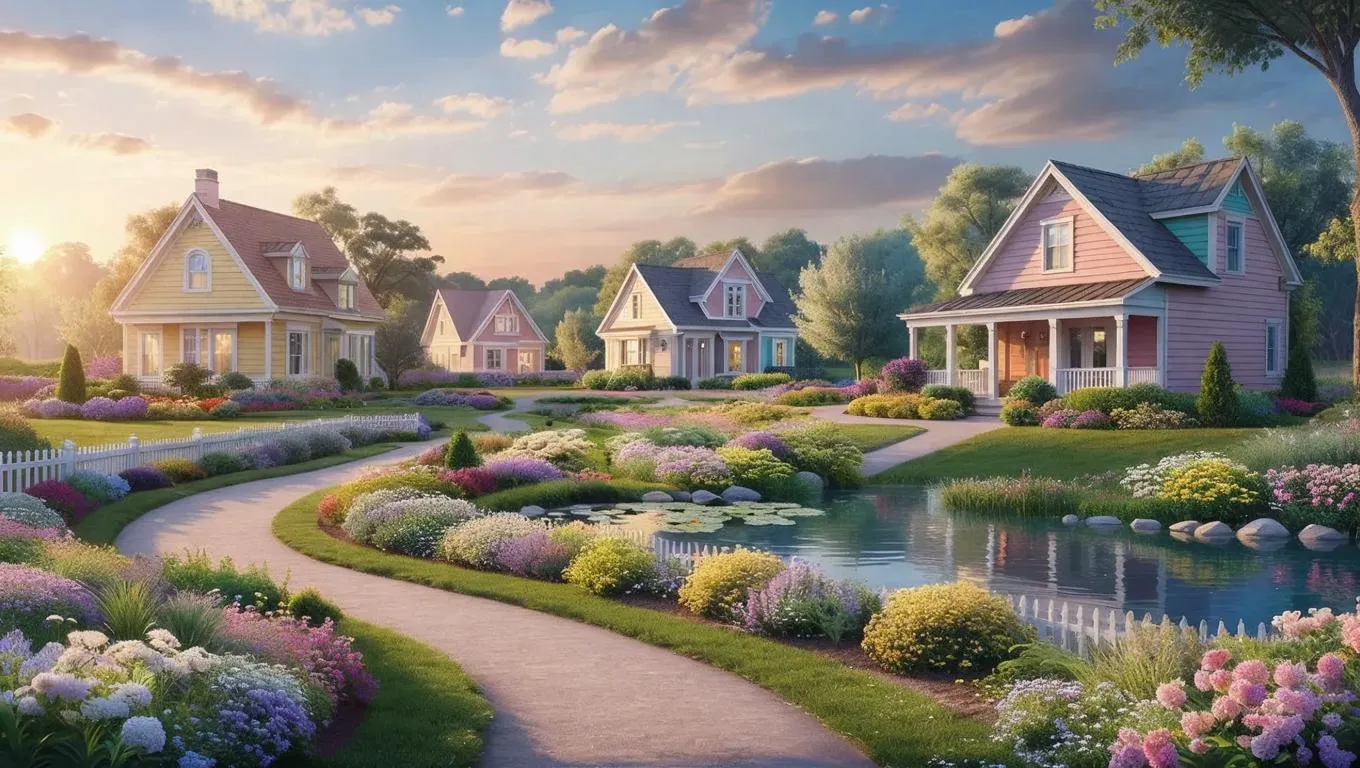 Generate AI-powered residential land visuals for real estate development, property showcases, and urban planning projects. Transform text prompts into realistic neighborhood layouts, landscaping concepts, and lot designs. Explore Vivago.ai's creative tools for detailed terrain mapping, infrastructure visualization, and land use optimization in residential areas.