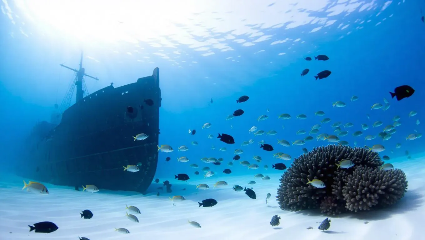 Transform text prompts into vivid underwater worlds with vivago.ai's AI tools. Generate captivating images of ancient shipwrecks surrounded by vibrant coral reefs and tropical fish. Bring your aquatic visions to life with professional-grade visuals powered by advanced AI effects and editing.