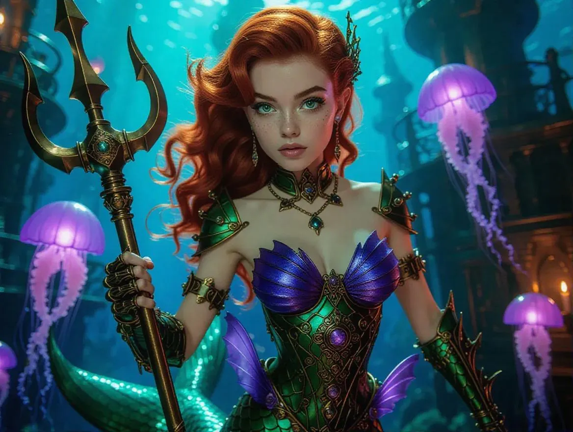 Unleash AI creativity with this steampunk Little Mermaid art—vivid jade scales, glowing violet prosthetics, and Poseidon’s trident clash in a bioluminescent steampunk city. Crafted by AI, this underwater fantasy merges brass gears, armored shells, and mechanized sea creatures. Transform prompts into cinematic scenes where sunlight filters through bubbles, blending industrial grit with aquatic wonder. Ignite imagination with AI-powered artistry.