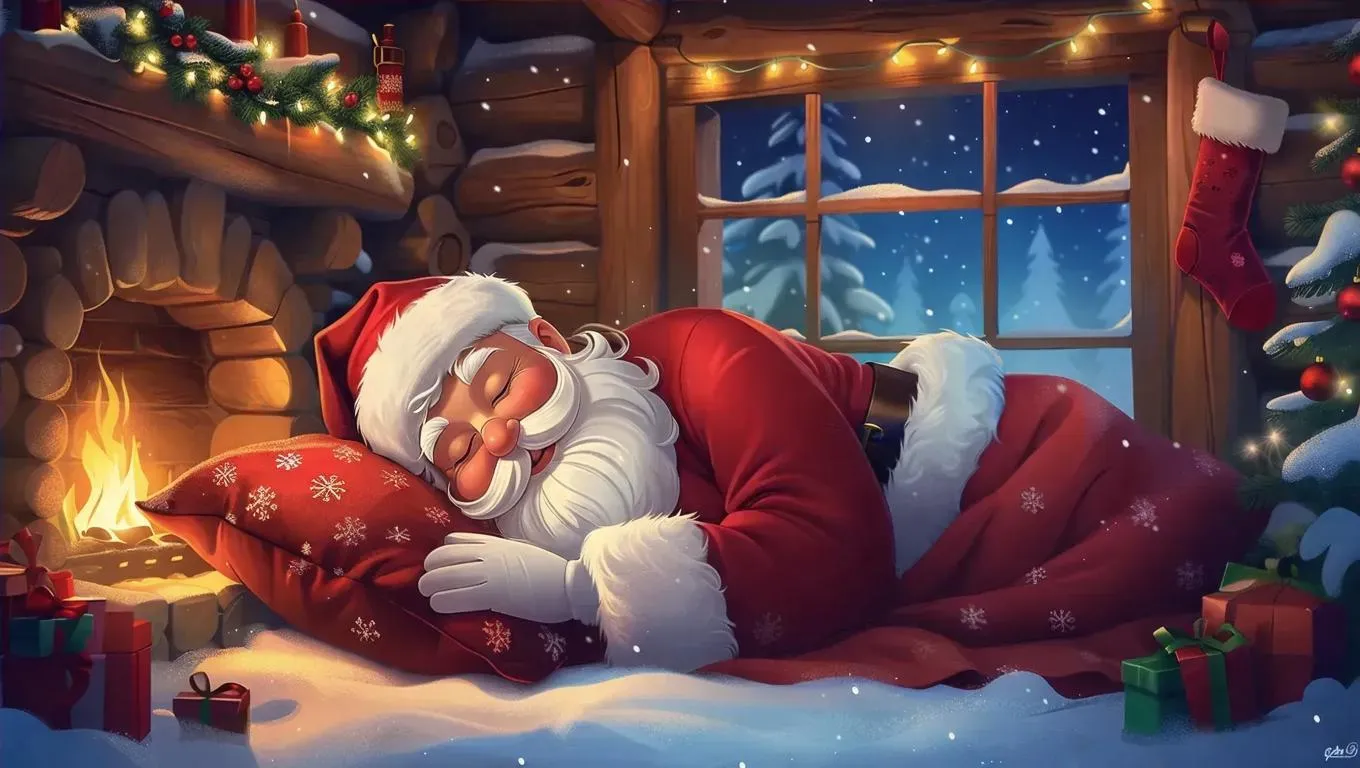 Generate a whimsical Santa Claus AI image with heavy breathing and deep sleep effects. Transform text into lifelike visuals using Vivago.ai's AI tools for festive, humorous, and professional-grade Christmas content. Perfect for holiday storytelling, memes, or unique digital art.
