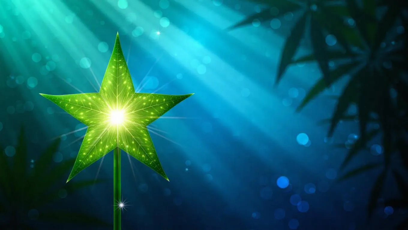 Spear with starfruit blade, radiant radial glow, ethereal landscape background, luminescent details, mystical ambiance