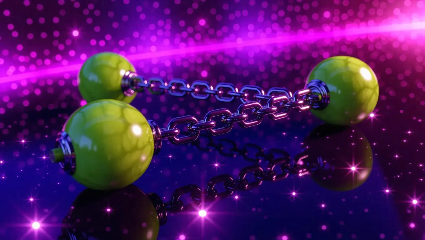 A pair of nunchucks crafted from vibrant, glossy kiwi fruits, connected by a sleek, polished metal chain, set against a cosmic starry night backdrop, exuding a blend of whimsy and precision, perfect for concept art.