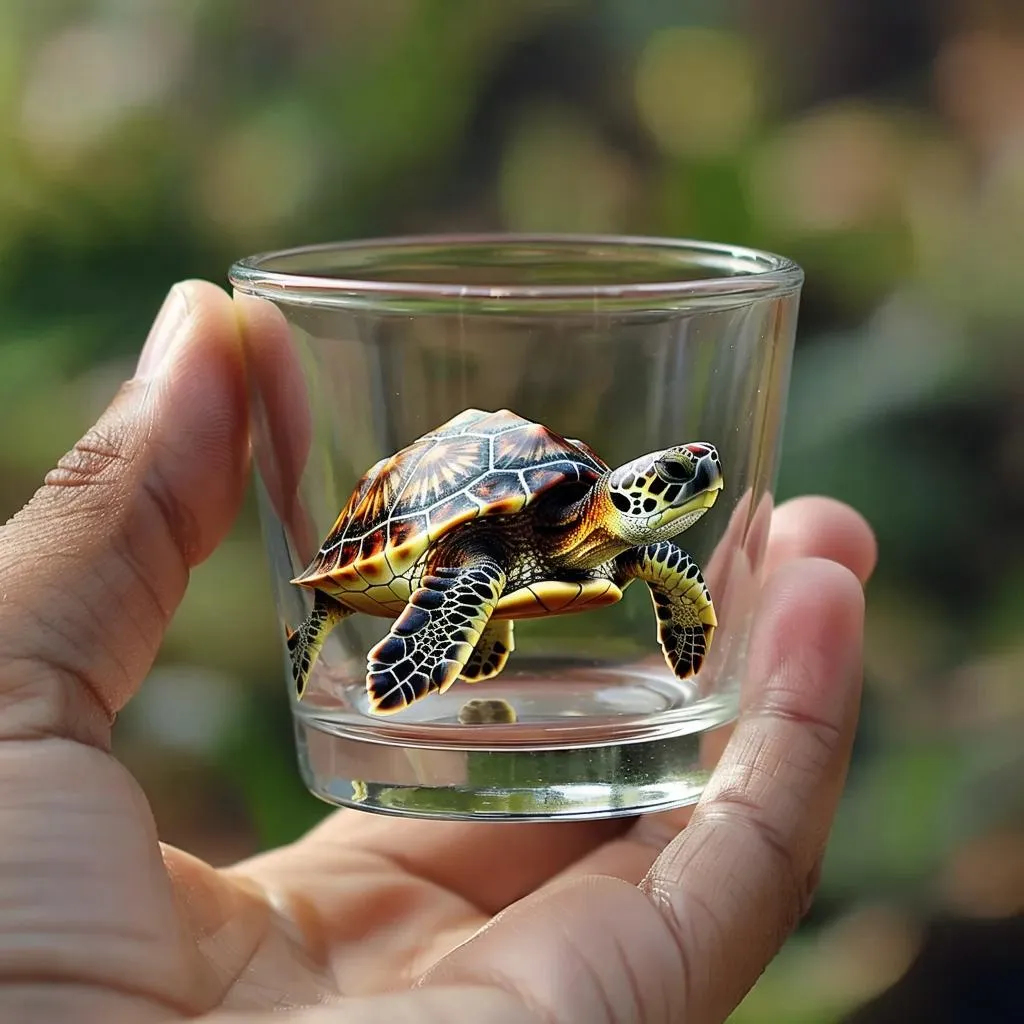 C4D, a dark blue paper toy box is completely wrapped in transparent plastic film. The box body has a large observation window to show the inside. A 3D cartoon-style girl doll is wearing pink overalls with a green and white striped shirt, light brown straight long hair with side bangs, a round face with big green eyes and thin eyebrows, a yellow and white sunhat and round glasses, holding a fruit smoothie cup, and wearing flat sandals. The package contains two changeable sun hats and three pairs of shoes of different styles. The background features a vibrant toy store display stand in pastel tones. The plastic packaging film reflects the ambient light, presenting a shiny texture. The overall picture is full of the charm of a collectible figurine.