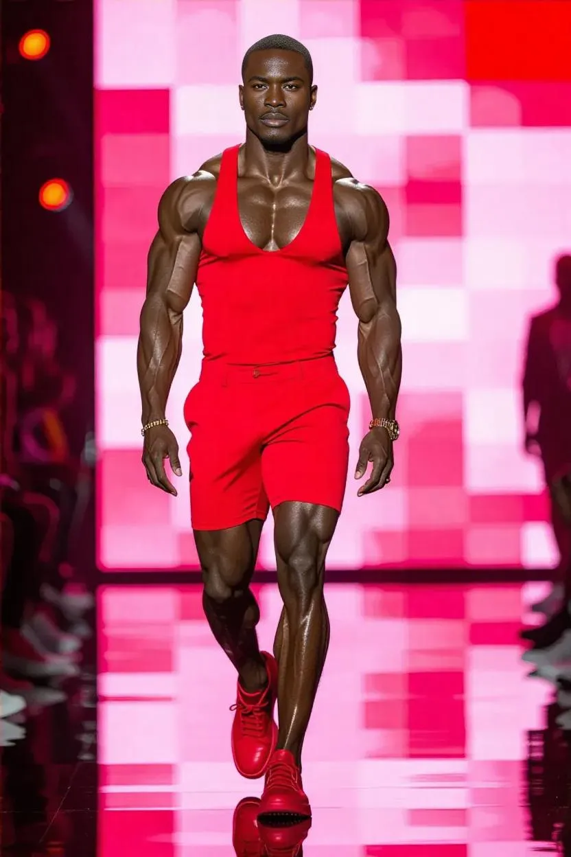 Create AI-generated visuals of a confident man in bold red attire with Vivago.ai. Transform text prompts into professional, sexy fashion imagery featuring tight shorts, deep-cut tank tops, and passionate expressions. Perfect for stylized content creation with AI-enhanced editing tools for striking, vibrant results.