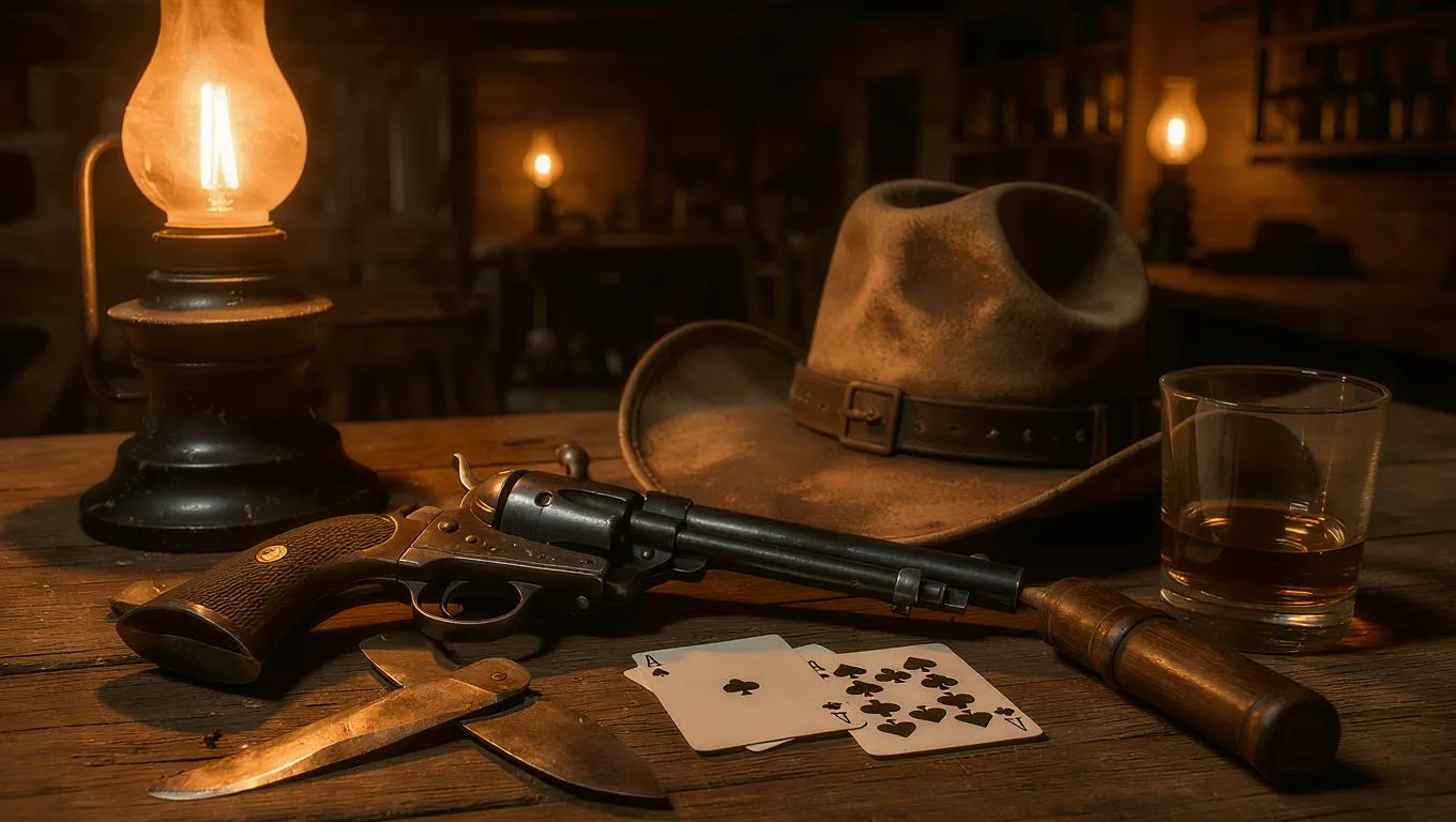 Generate gritty Wild West bar scenes effortlessly with vivago.ai's AI art tools. Turn prompts describing Colt revolvers, cowboy hats, knives, playing cards, and whisky into detailed, vintage-styled AI images. Perfect for evocative Western visuals, saloon ambiance, and creating iconic cowboy era art from text descriptions. Try our text-to-image generator now.