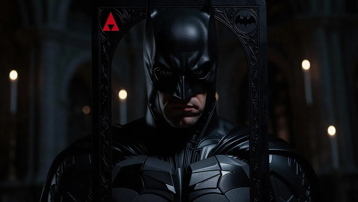 Create a regal AI-generated king card featuring Batman from *The Dark Knight*. Transform text prompts into custom playing cards with dynamic visuals. Use Vivago.ai's AI effects for professional Batman fan art and king card designs inspired by Gothic Gotham aesthetics.