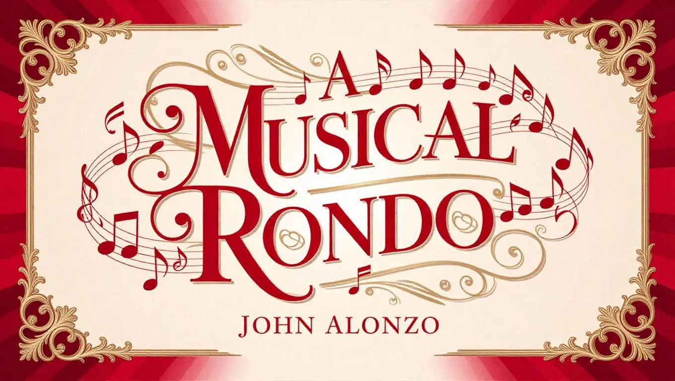 **"A Musical Rondo" by John Alonzo** Mozart-inspired grandeur meets modern artistry. Bold red and gold accents frame ornate Baroque motifs, swirling sheet music, and a quill poised over parchment. Your title gleams in gilded serif, while your name shines regally below. A subtle silhouette of Mozart overlooks a grand piano, blending timeless elegance with your creative vision. Perfect harmony of classical opulence and contemporary flair. 🎹✨