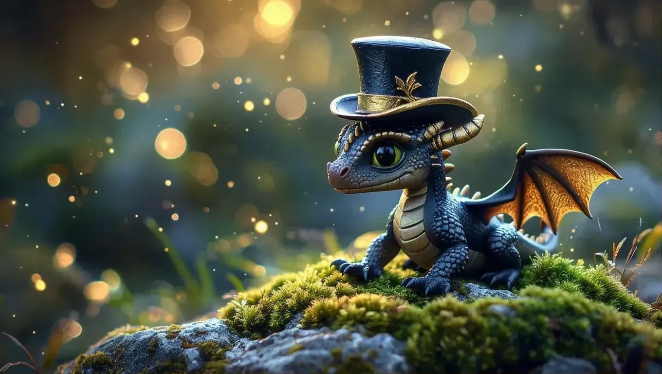 Generate a whimsical fantasy scene with this AI image generator prompt. Create a charming, detailed tiny dragon wearing a dapper top hat using vivago.ai's advanced AI tools. Perfect for children's book illustrations, magical character designs, or unique digital art projects. Transform text prompts into enchanting visuals with professional-grade AI effects.