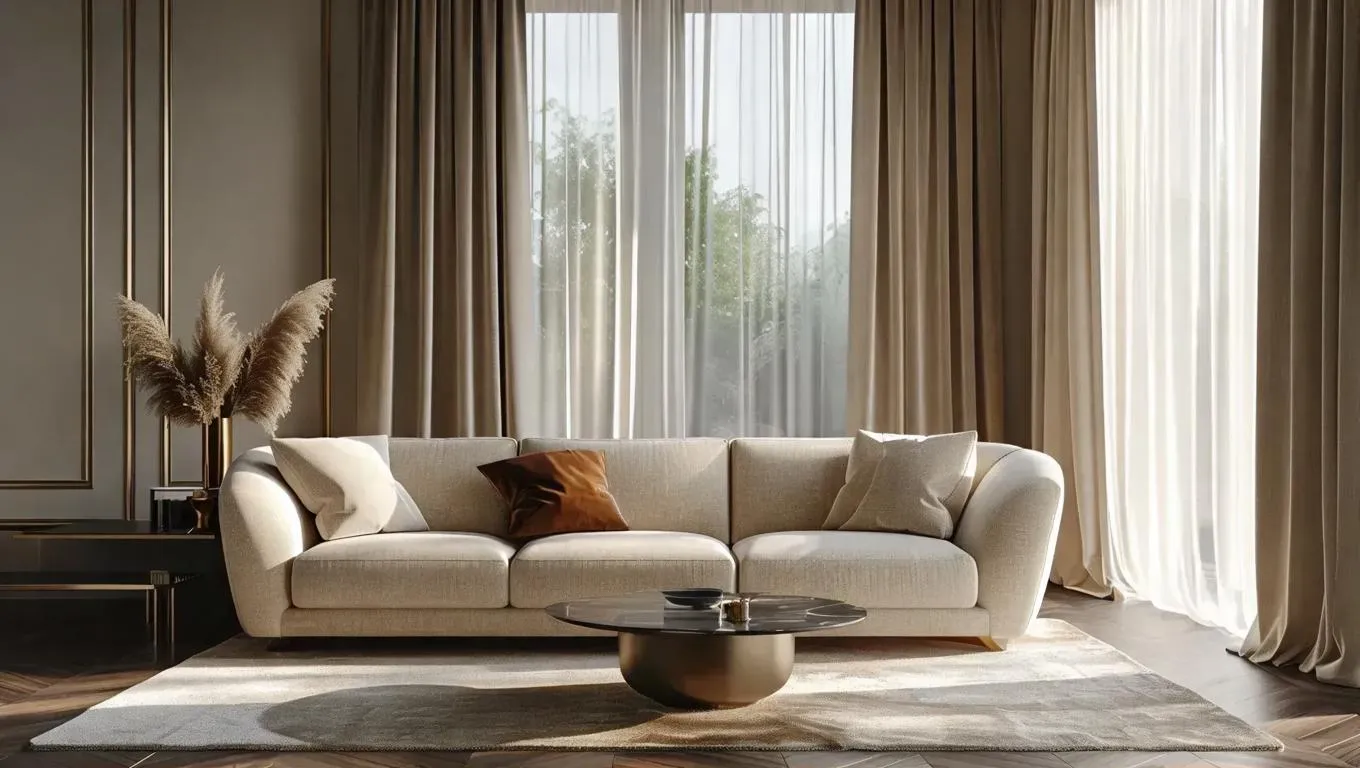 Create hyperrealistic AI-generated living room designs with non-classical style sofas and curtains. Transform text prompts into vivid, lifelike interiors using Vivago.ai's advanced AI tools for precision detail and modern aesthetics. Ideal for visualizing unconventional decor concepts with photorealistic textures, lighting, and spatial depth.