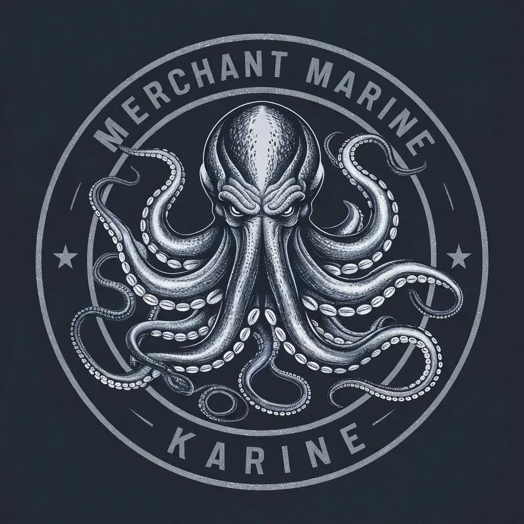 Create a bold Merchant Marine logo with mythical kraken line art for T-shirts using AI. Vivago.ai transforms text prompts into intricate, wearable designs featuring legendary sea creatures in crisp linework. Perfect for maritime-themed apparel, our AI tools generate customizable, professional-grade logos with detailed tentacles and nautical elements.