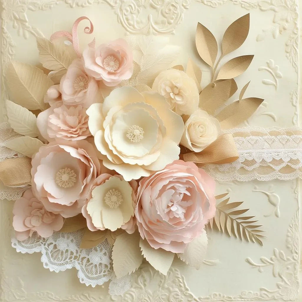 Create delicate vintage textured backgrounds with soft cream tones, embossed details, and watercolor depth using AI. Design ethereal floral arrangements featuring fabric blooms, paper foliage, and lace accents. Perfect for romantic, antique-inspired visuals. Explore AI tools for embossed textures, watercolor effects, and layered mixed-media artistry at VivaGO.