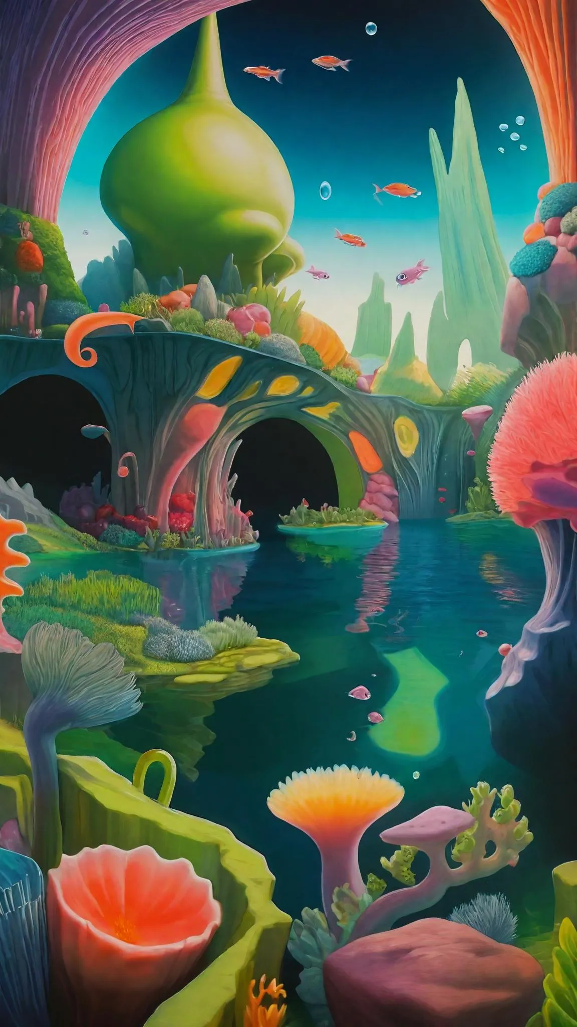 Explore a hyper-realistic AI-generated Cretaceous underwater world with submerged fantasy cityscapes, crystal-clear turquoise waters, and whimsical pink jelly creatures. Vivago.ai crafts vivid scenes of coral reefs, ancient rock formations, and ethereal marine life, transforming prompts into professional-grade visuals for immersive aquatic storytelling. Unleash creativity with AI-powered underwater scene design.