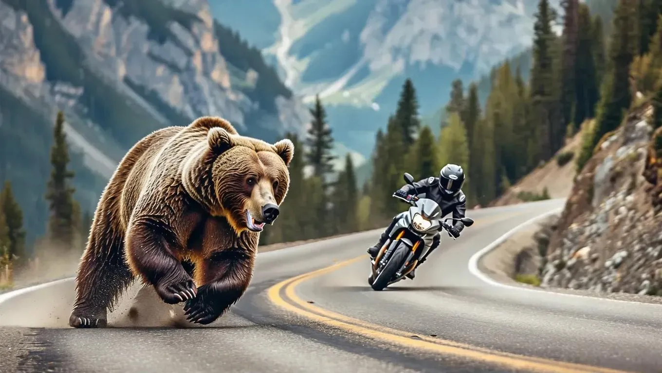 Experience the thrill of an AI-generated chase: a muscular brown bear races a motorcyclist on a treacherous mountain pass. AI-powered visuals capture claw marks on asphalt, jagged cliffs, and blurring pines as the rider narrowly escapes. Perfect for action-packed storytelling, dynamic scenes, or adrenaline-fueled content creation with Vivago.ai’s cutting-edge image generation tools.