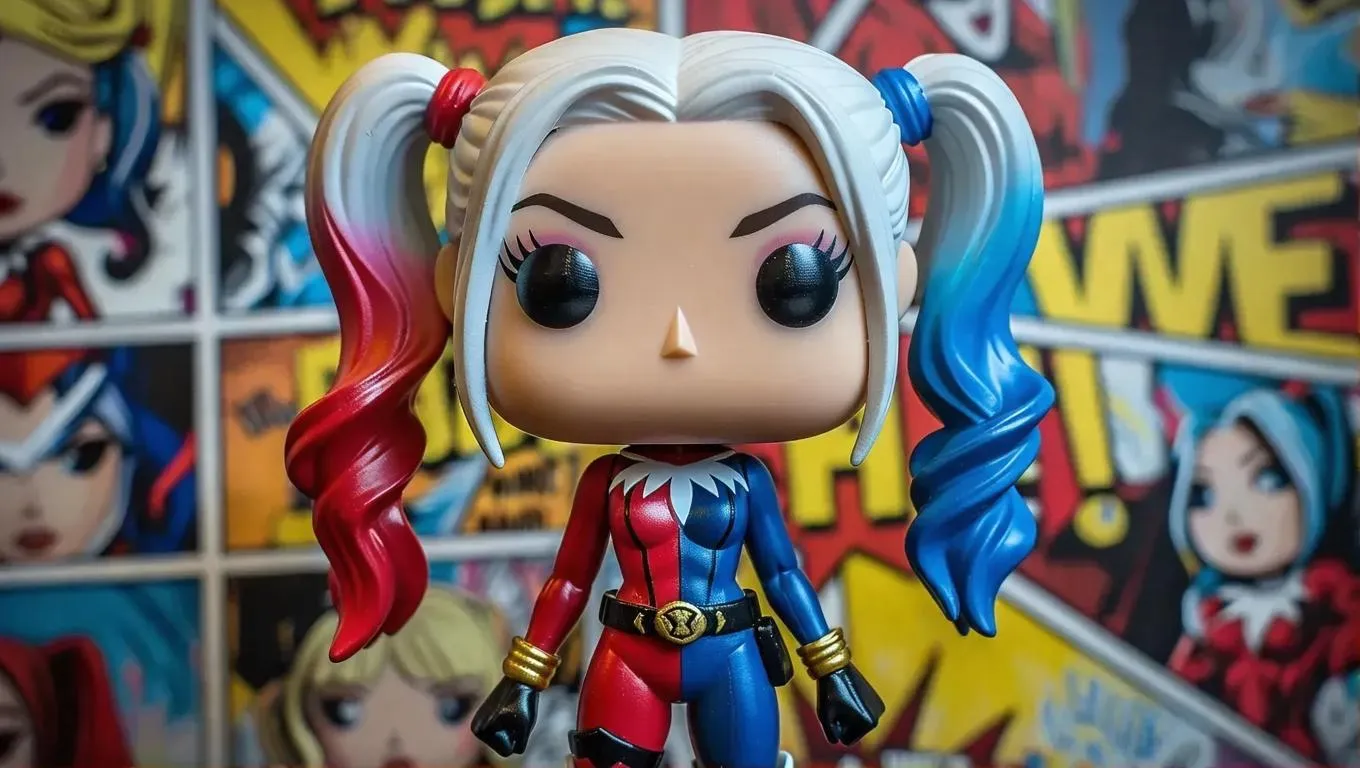 Create a unique Funko Pop with AI-powered precision: pale skin, dual-tone blonde hair, bold blue and red pigtails, and a striking villain outfit in black, white, red, and blue. Perfect for custom collectibles or AI-generated character designs. Transform your vision into vibrant, professional-grade action figures instantly with VivaGo.ai.