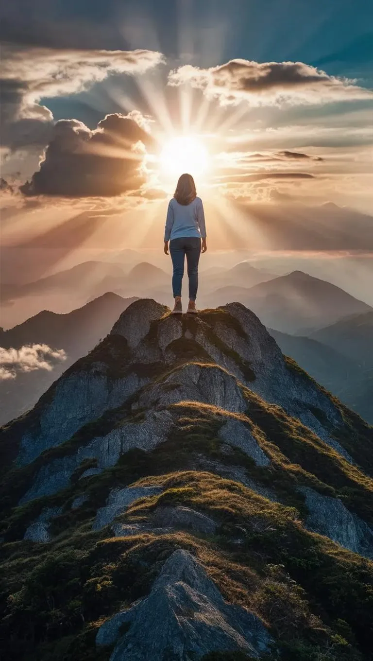 Experience victory and fresh starts with our 4K realistic AI-generated image: a person atop a mountain, arms outstretched, bathed in golden sunrise light. Perfect for motivational content, branding, or art. Elevate visuals with vivago.ai’s professional-grade AI tools for lifelike details and inspiring symbolism. Transform ideas into stunning imagery instantly.