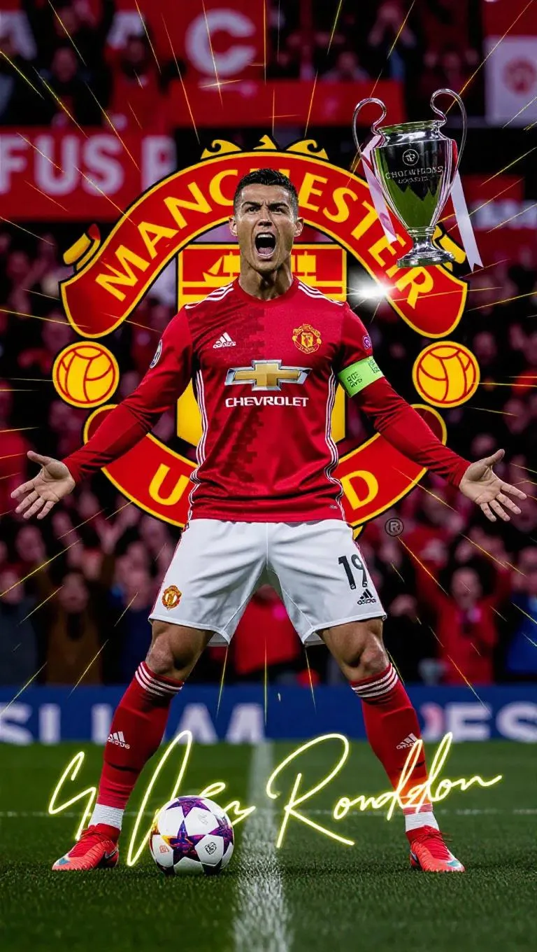 AI-generated Cristiano Ronaldo artwork captures CR7's iconic Manchester United celebration with dynamic motion trails, geometric stadium shards, and neon-accented CR7 typography. Features Champions League action, Adidas/Nike gear, and Unreal Engine 5 rendering. Experience next-gen 8K AI visuals blending football passion with cutting-edge digital artistry.