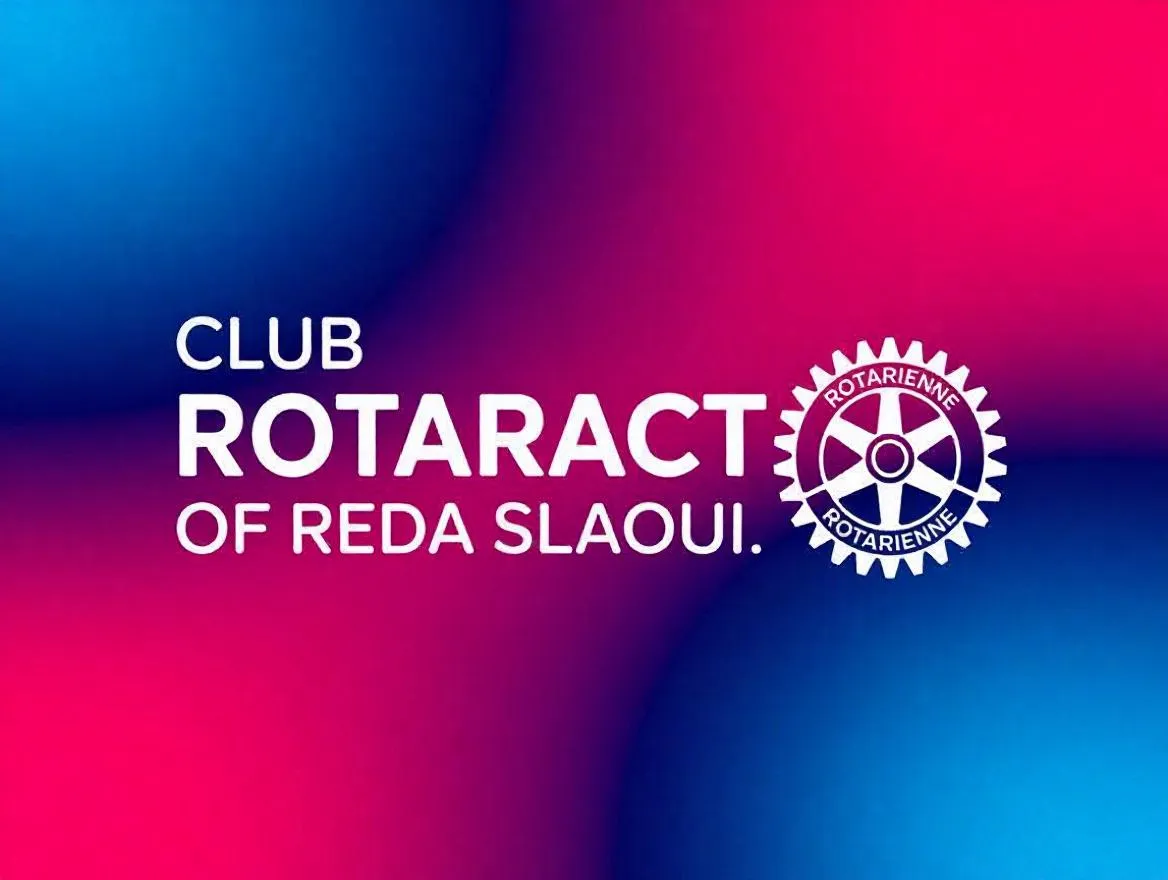 I want logo of “Club Rotaract of Reda Slaoui” The background i want it blue degre to pink as a shadow and i want the name in middle with the logo of rotarienne i want it the same logo exactly of them on the right