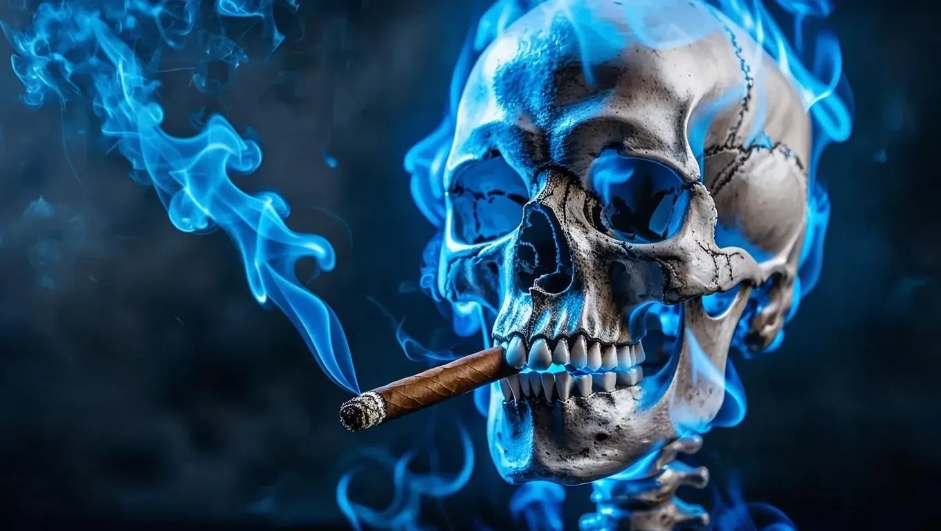 Generate striking AI visuals of a blue flame-wreathed evil skull smoking a cigar. Create dark, surreal imagery with cinematic intensity. Explore AI-generated horror, supernatural art, and edgy character design. Transform text prompts into haunting digital masterpieces using advanced AI tools.