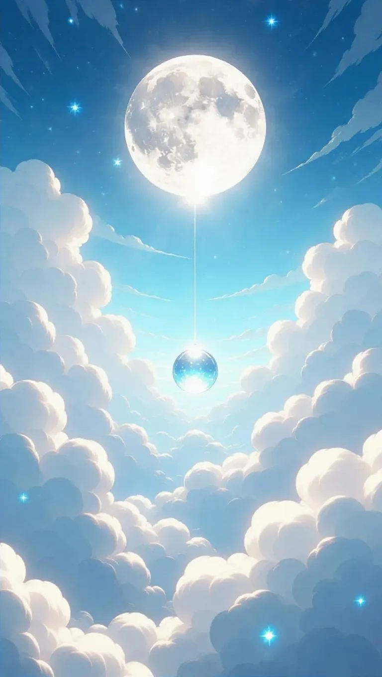 20. Enormous moonstone pins glow on a ceiling of clouds, players roll luminous spheres imbued with celestial treasures, striking pins that burst into flashes of silver light, ringing out like a melody of tiny celestial bells.