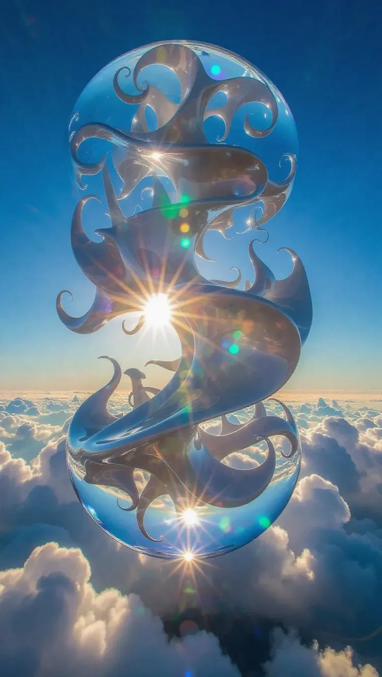 The sculptures are molded from an airy material that can drift on the clouds. They take the forms of whimsical creatures, bubbles, or mesmerizing designs. These sculptures float gracefully, enhancing an atmosphere of fantasy and charm. The midday sun brightens them, creating enchanting patterns on the clouds below.