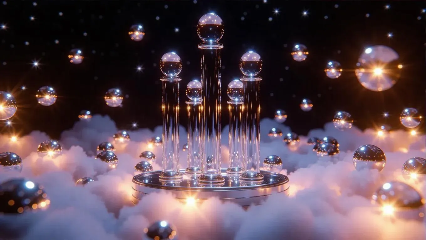 12. Towering moonstone pins gleam on a floating cloud pad, players roll luminous balls embedded with twinkling star bits, striking pins that splinter into streams of silver light, ringing out like a chorus of tiny celestial bells.
