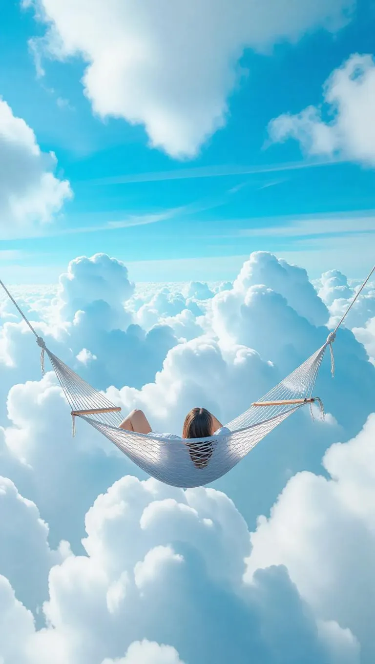 Suspended between two ethereal cloud-pillars, these hammocks woven from soft, breathable cloud-fibers sway gently with the breeze. Lying in them, you can bask in the serene rocking motion, gazing up at the expansive sky and fluffy clouds, enveloped in a tranquil, stress-free atmosphere.