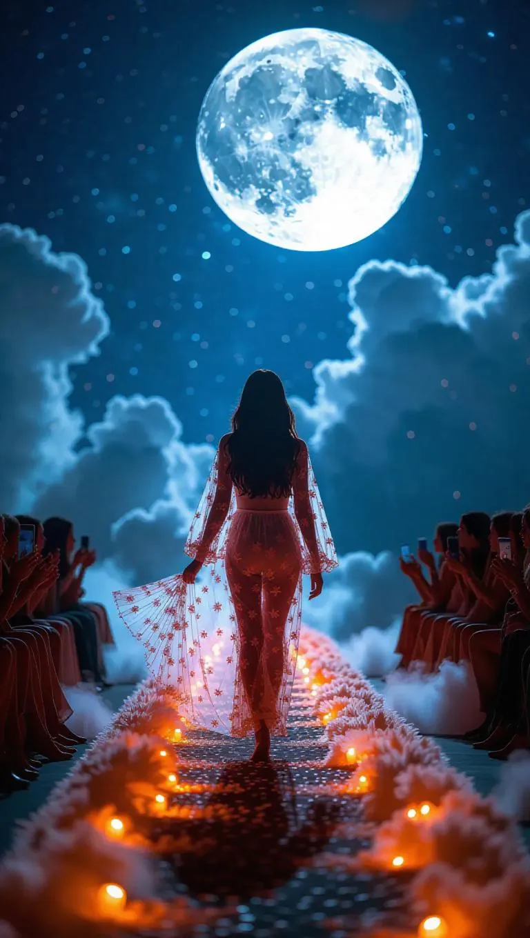 Aunt Moon weaves a resplendent blanket runway across the gleaming clouds with dancing rays, young models walk in vibrant pyjamas. Fairy pajamas flutter softly with each step, twinkly nightcaps play lilting melodies. The audience is delighted fairies nestled in glimmering petals.