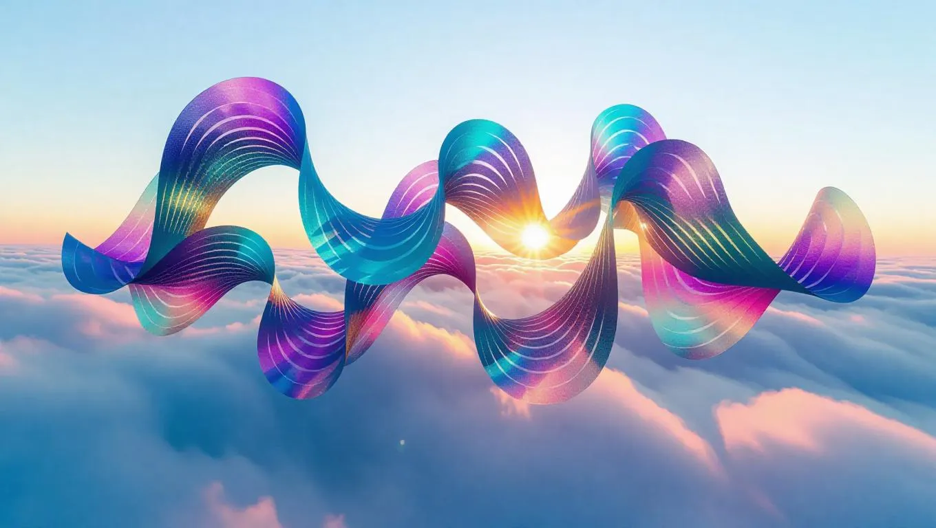 The sculptures are fabricated from an eco-friendly substance that can buoyantly hover on the clouds. They depict themes such as underwater life, cosmic patterns, or abstract waves. These sculptures appear to be blooming in the air, creating a vibrant and enchanting scene. The soft afternoon light cascades through them, casting soft patterns on the clouds below.