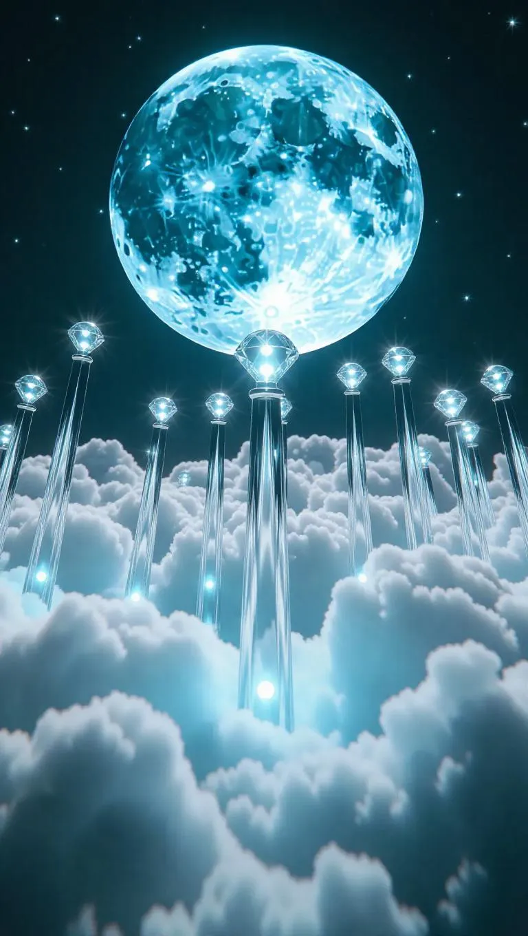 17. Huge moonstone pins glimmer on an ocean of clouds, players roll misty orbs laced with shooting-star fragments, striking pins that shatter into bright arcs of silver light, ringing out like a melody of tiny celestial bells.