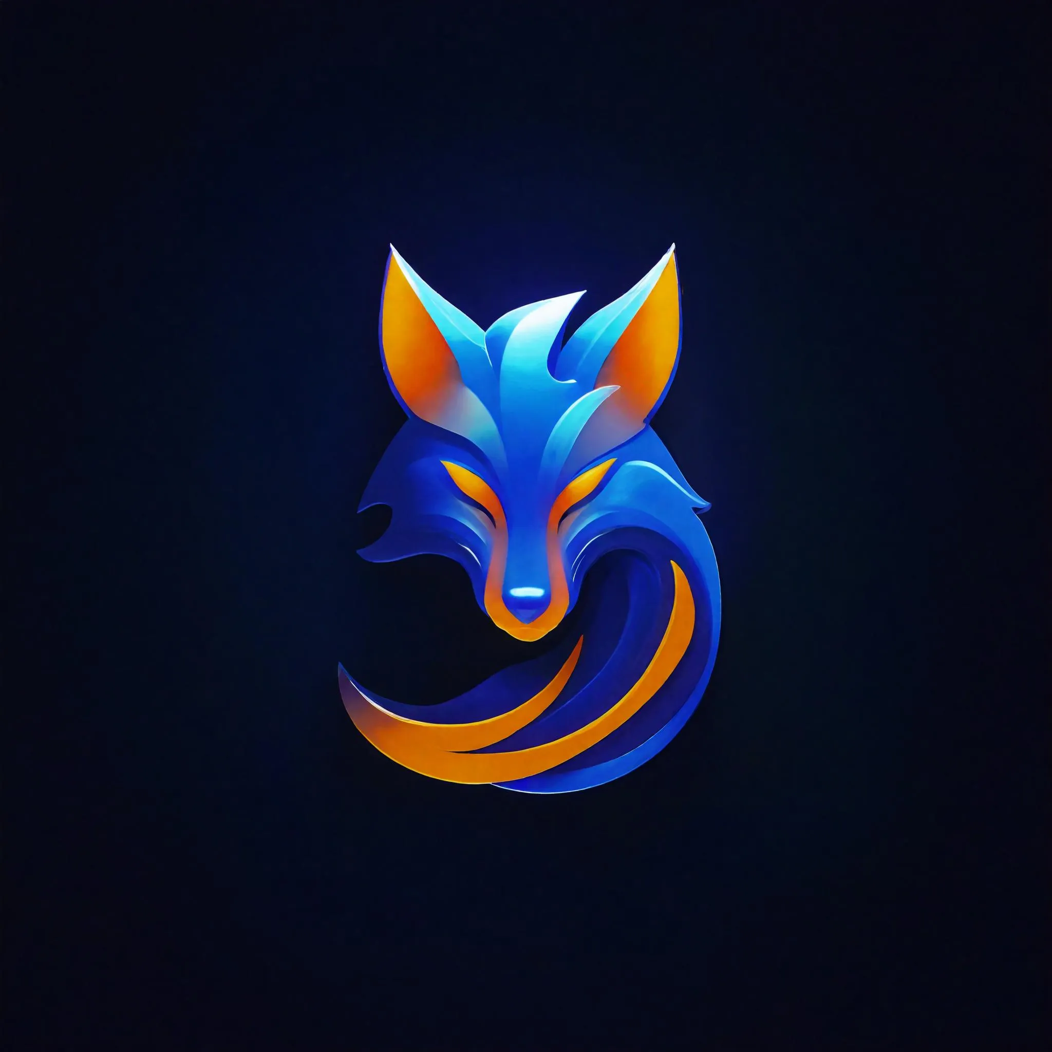 Create a dynamic XOFry logo blending abstract fox motifs with stylized number 2 elements, featuring vibrant cobalt blue and neon orange accents. AI-generated modern design balances playful energy with sophistication, using neon-cool lighting effects for eye-catching visual appeal. Non-realistic illustrated fox ensures creative brand identity.
