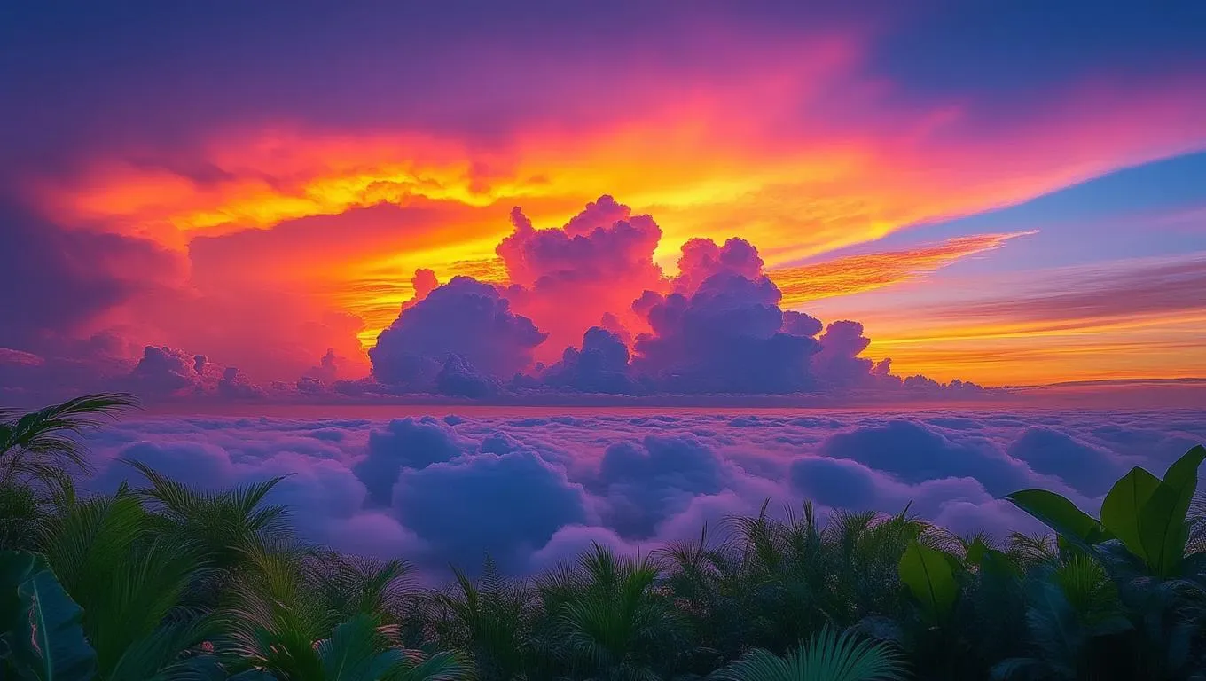 Transform your visuals with the Sky Garden AI effect: generate breathtaking sunset skies featuring towering cumulonimbus clouds, vibrant orange-pink-purple hues, and layered fluffy clouds viewed from above. Elevate AI image generation with vivago.ai's professional tools for stunning, atmospheric landscapes. Perfect for artists and designers seeking dynamic, colorful skies in AI-powered creations.