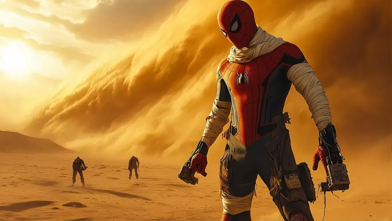 Create dynamic AI-generated art of a post-apocalyptic Spider-Man battling mutated scavengers in a desert wasteland. Craft survival armor, sandstorm visuals, and rugged grappling devices with Vivago.ai’s text-to-image tools for professional-grade apocalyptic scenes.
