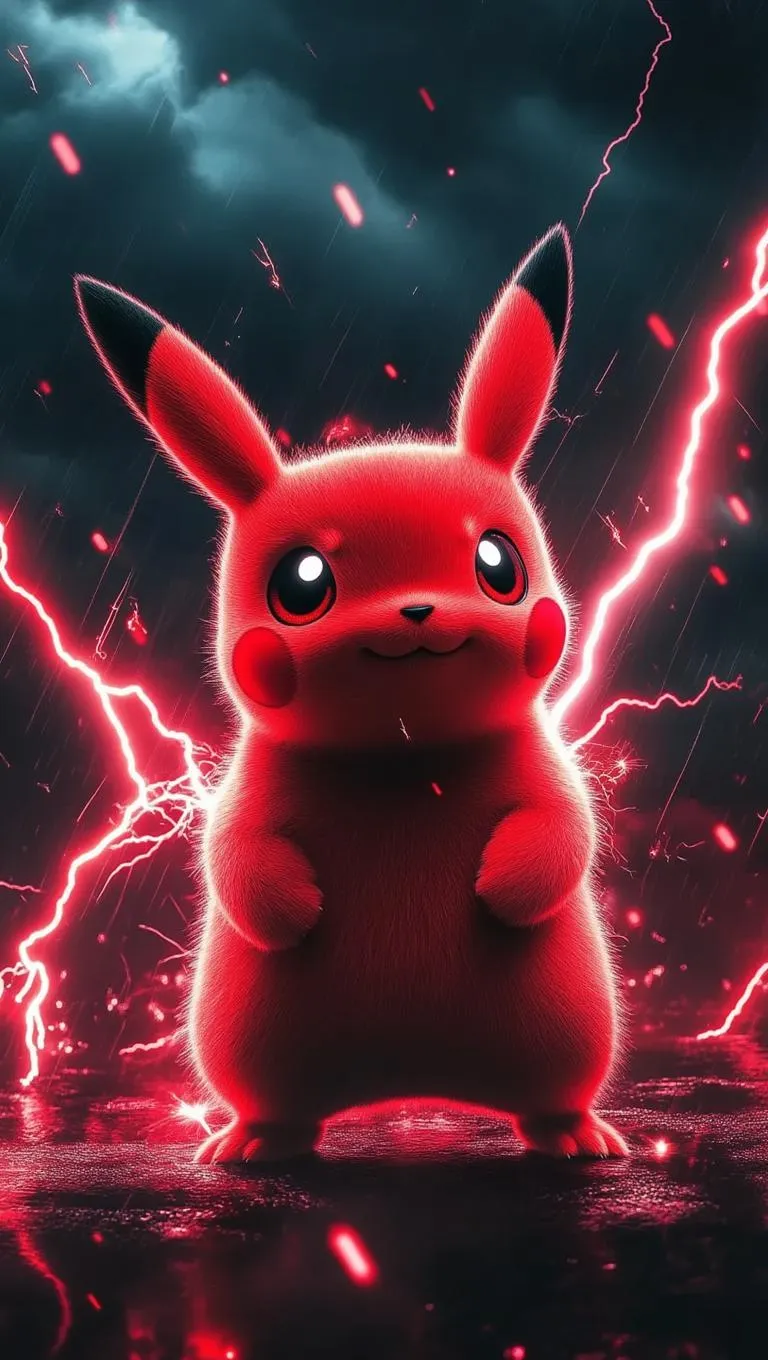 Vibrant red Pikachu crackling with intense crimson lightning bolts against a stormy sky. AI-generated art captures dynamic electricity sparks and cinematic energy. Transform text prompts into electrifying visuals with vivago.ai’s AI image tools for bold, professional-grade effects. Unleash creativity with AI-powered lightning, shadows, and vivid atmospheres.