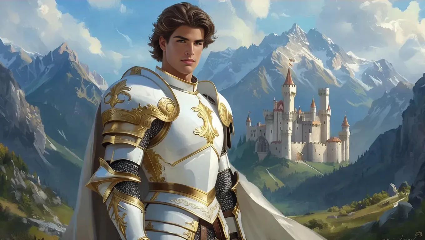 Create striking AI-generated visuals of a muscular brunette teen Paladin in radiant white and gold armor, set against a majestic kingdom and mountain landscape. Perfect for fantasy storytelling and professional creative projects with Vivago.ai.