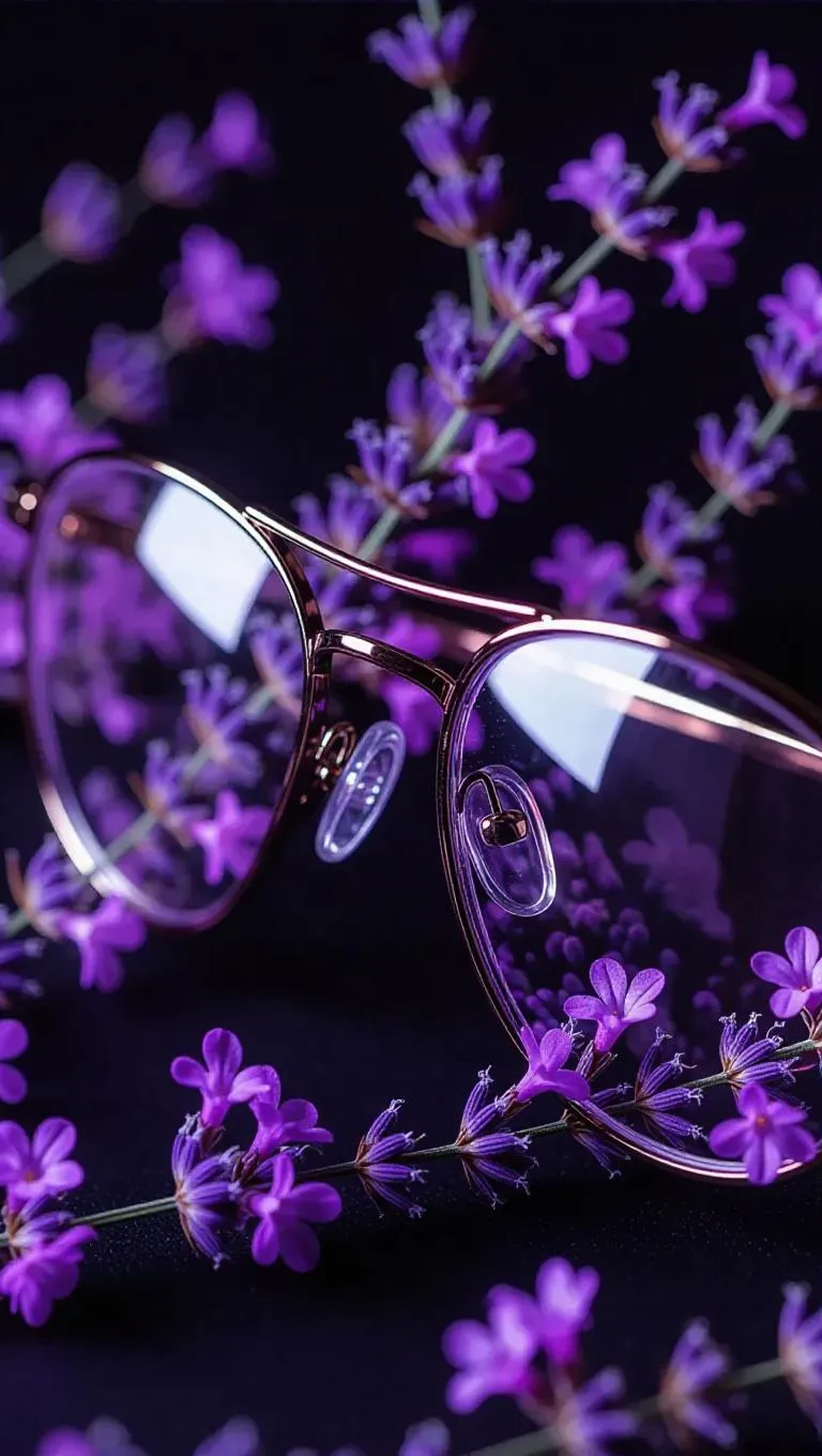 A broken glasses frame, the cracks stuffed with aromatic lavender and blooming thyme