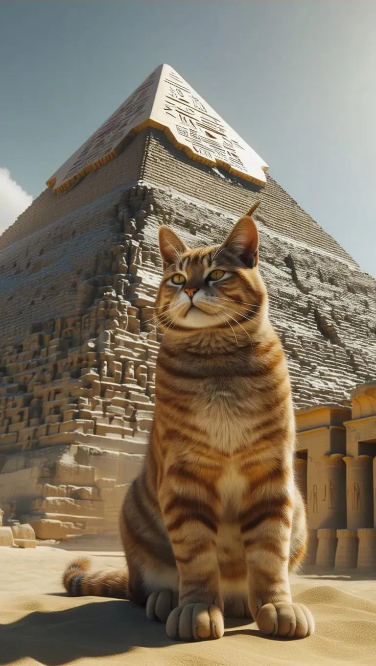 Generate a cinematic scene of a colossal cat perched on ancient Egypt pyramids with AI image generator. Ultra-realistic details, high-resolution visuals, and professional-grade editing tools bring your creative vision to life. Transform text prompts into stunning, trending AI effects instantly. Craft jaw-dropping visuals effortlessly.