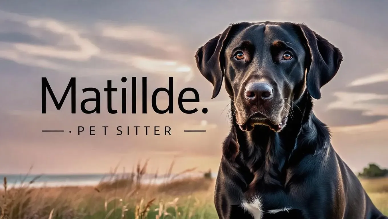 Create a realistic, captivating Instagram logo for Matilde.Petsitter, featuring a striking black Labrador Retriever dog, artfully posed and gazing lovingly at the viewer. The logo design should seamlessly incorporate the name Matilde.Petsitter, with a clean, modern font and a harmonious color palette that exudes professionalism and warmth. The overall design should evoke a sense of trust, reliability, and a deep love for pets.