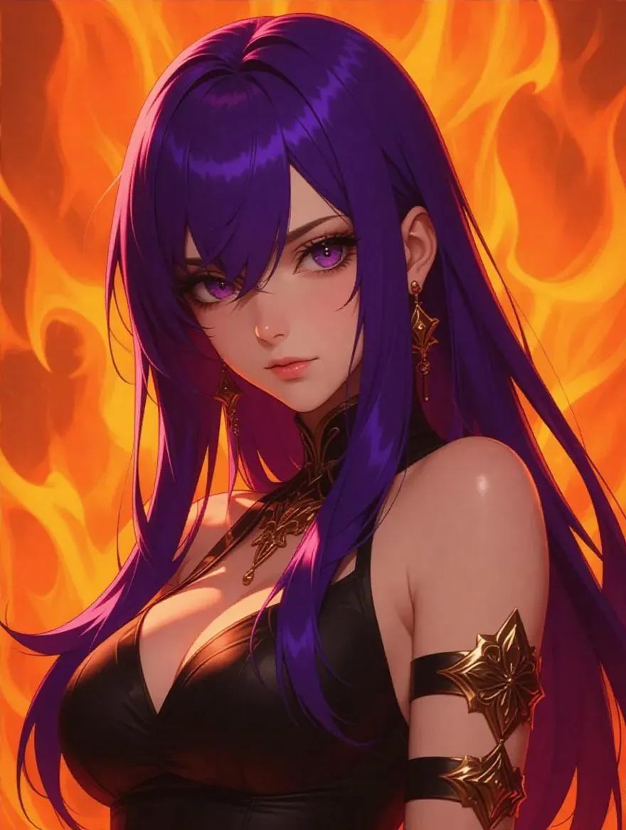 Inferno Pop Anime style, Lucky with light-purple-brown light-yellow and red color palette