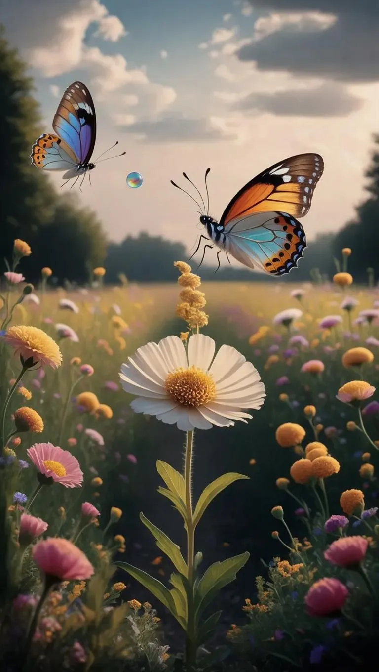 Experience stunning 4K realistic AI-generated imagery of a butterfly soaring over vibrant blooming flowers, symbolizing transformation, growth, and beauty of change. Vivago.ai’s advanced AI transforms text prompts into professional-grade visuals. Unleash creativity with cutting-edge AI effects and editing tools.