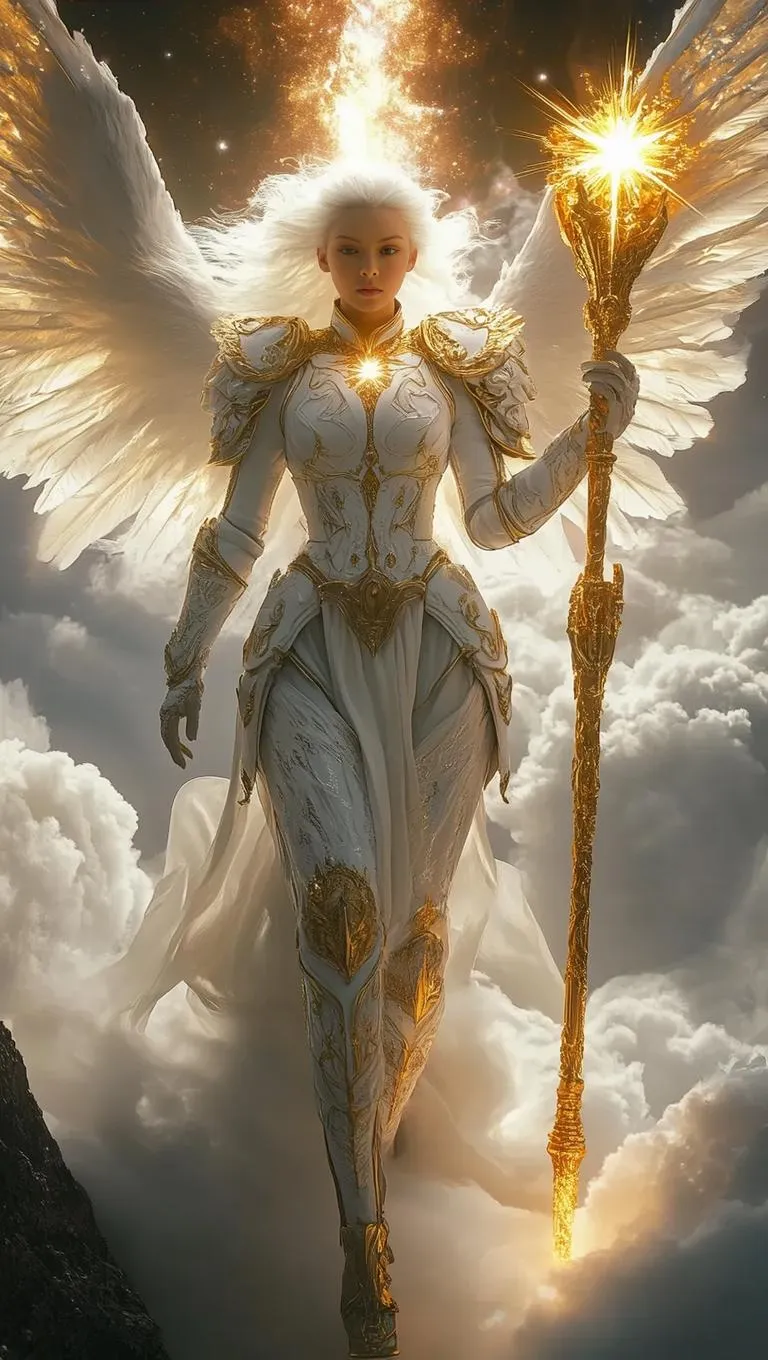 Craft hyper-realistic AI-generated visuals of a divine angel descending with glowing hair, ornate gold-white armor, and prismatic scepter. Capture cinematic godlight, photorealistic wings, and dynamic motion in 8K resolution. Perfect for celestial imagery with volumetric lighting, ultra-detailed textures, and cosmic backgrounds. Elevate digital art using vivago.ai’s advanced tools for professional-grade, ethereal storytelling.